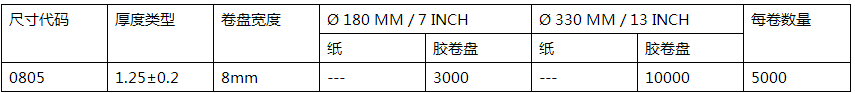 國巨0805尺寸大小表